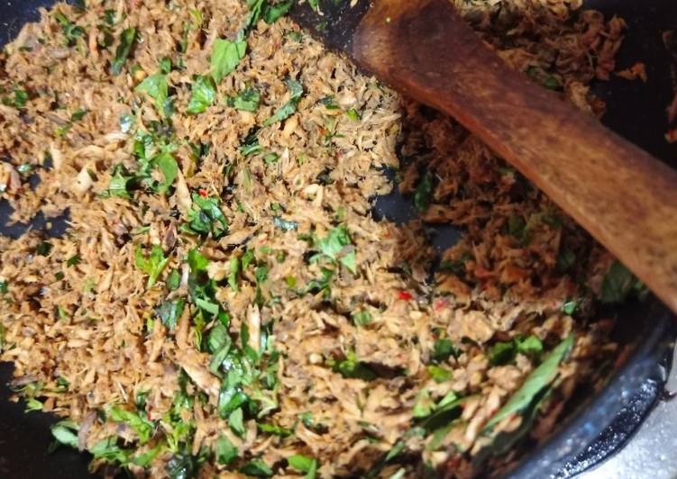 - Setelah matang masukan daun kemangi, aduk rata dan angkat.. Siap dijadikan isian panada.